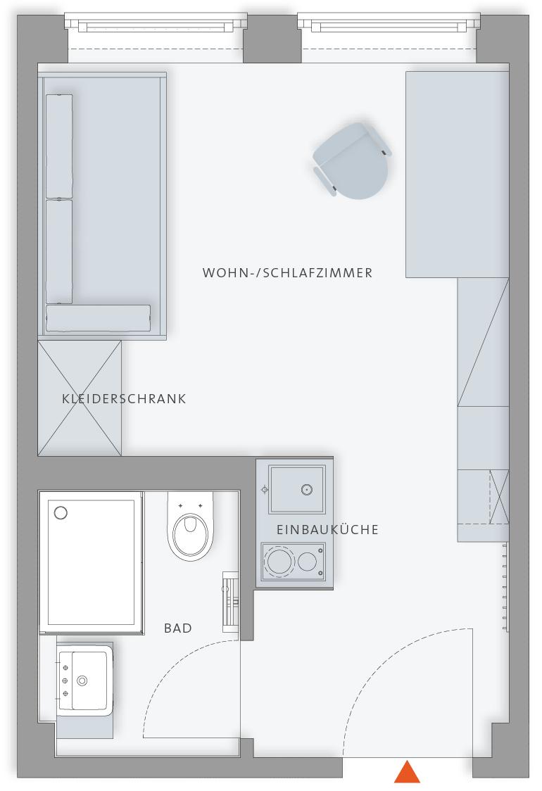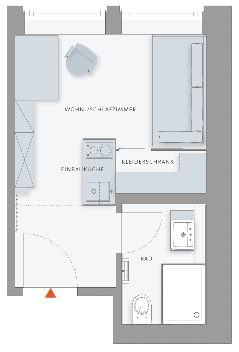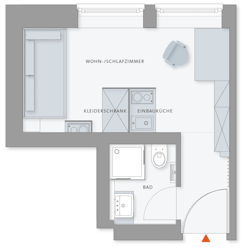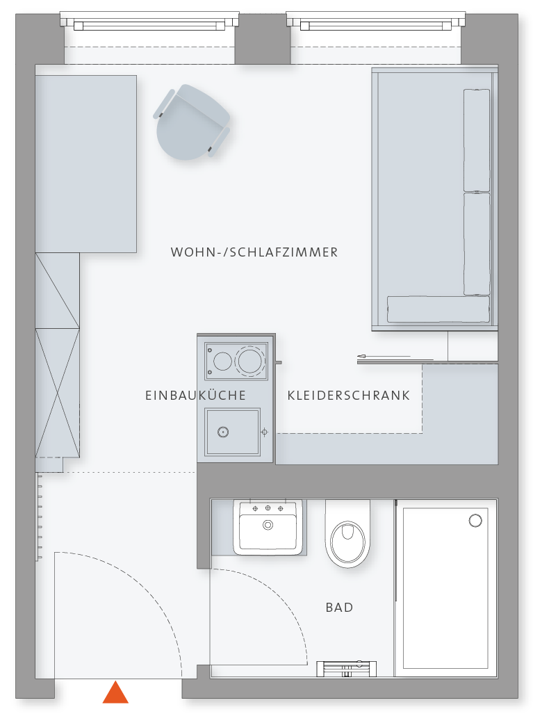 Typ E 1-Zimmer-Apartment / ca. 18 m² / Hofseite